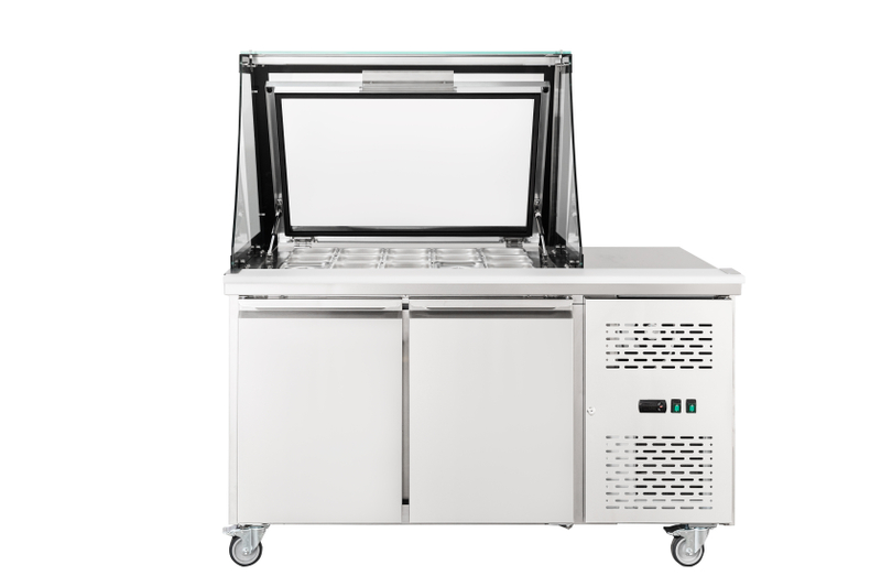 The commercial prepare tables provides efficient, safe, and versatile storage solutions. Their design and functionality support the needs of culinary professionals, helping to streamline food preparation and service while maintaining food quality. Ideal for storing prepped ingredients, sauces, and dressings in prepare tables, ensuring they remain fresh and at safe temperatures.